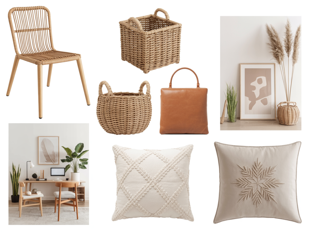 - Natural Wood or Rattan Desk